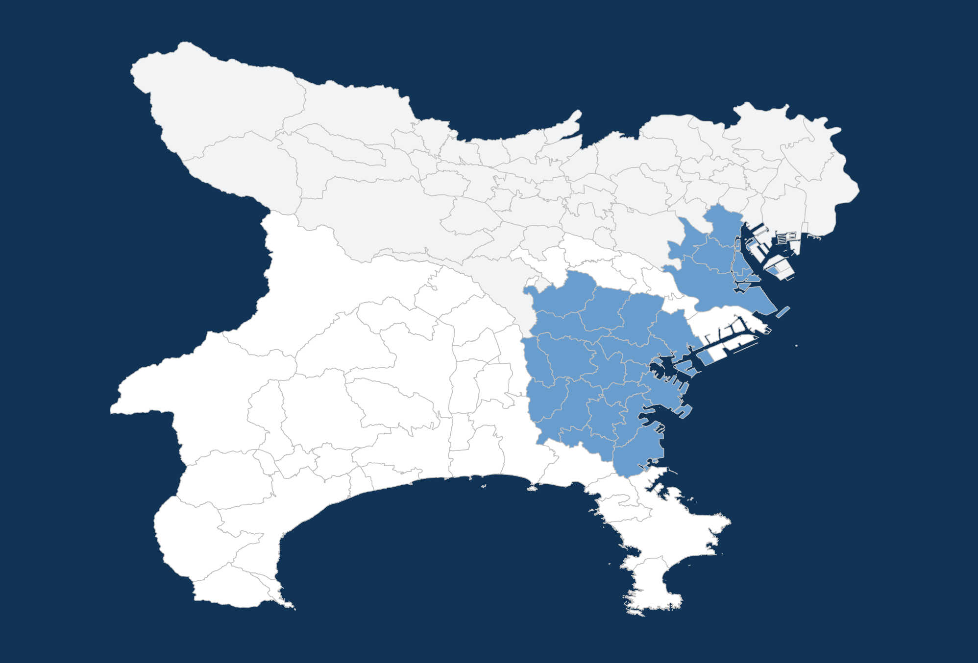 神奈川県:川崎市川崎区・幸区・高津区・中原区、横浜市神奈川区・港北区・都筑区・鶴見区