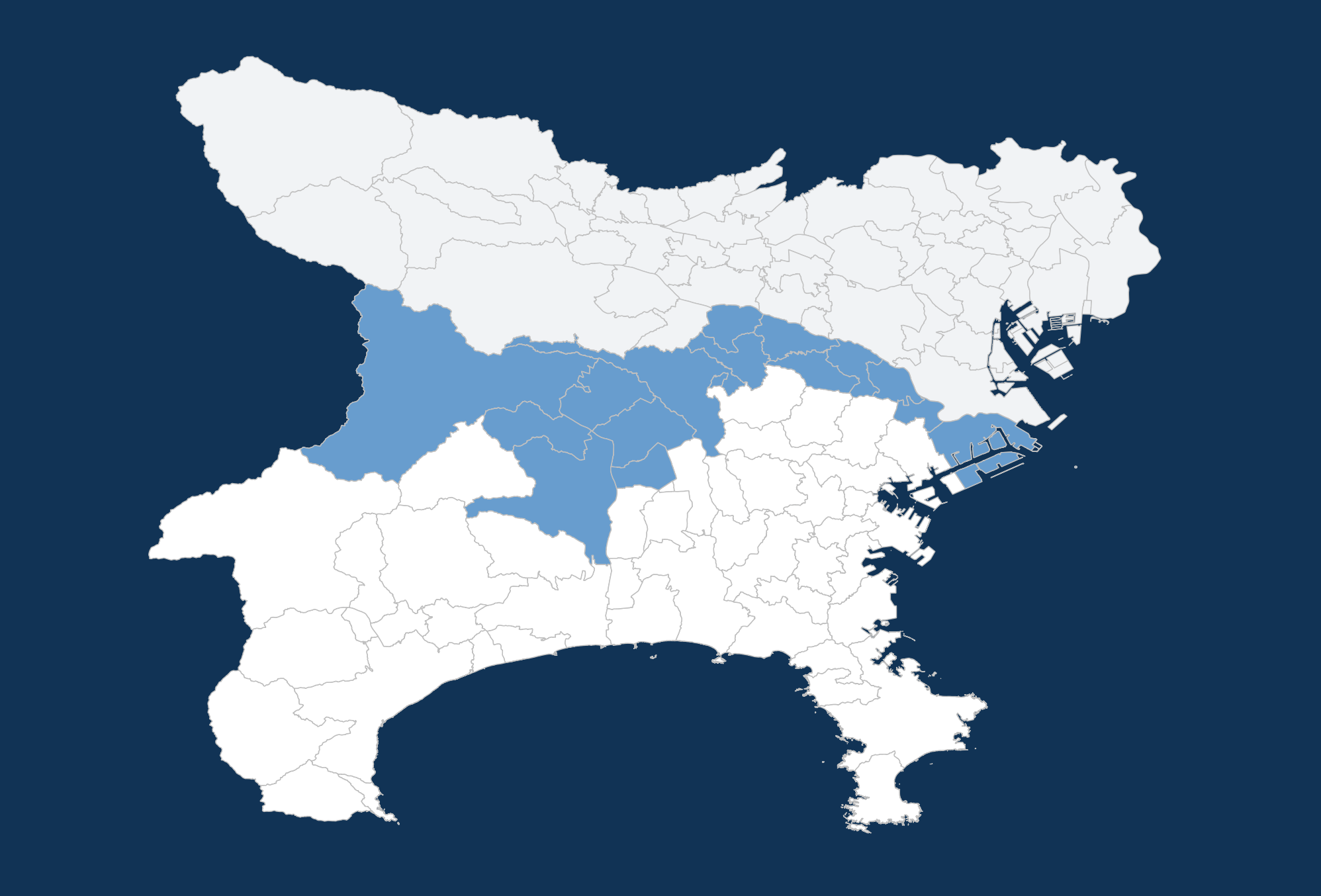 神奈川県:愛甲郡愛川町・清川町、厚木市、川崎市麻生区・多摩区・宮前区、相模原市中央区・緑区・南区、座間市、横浜市青葉区・旭区・瀬谷区