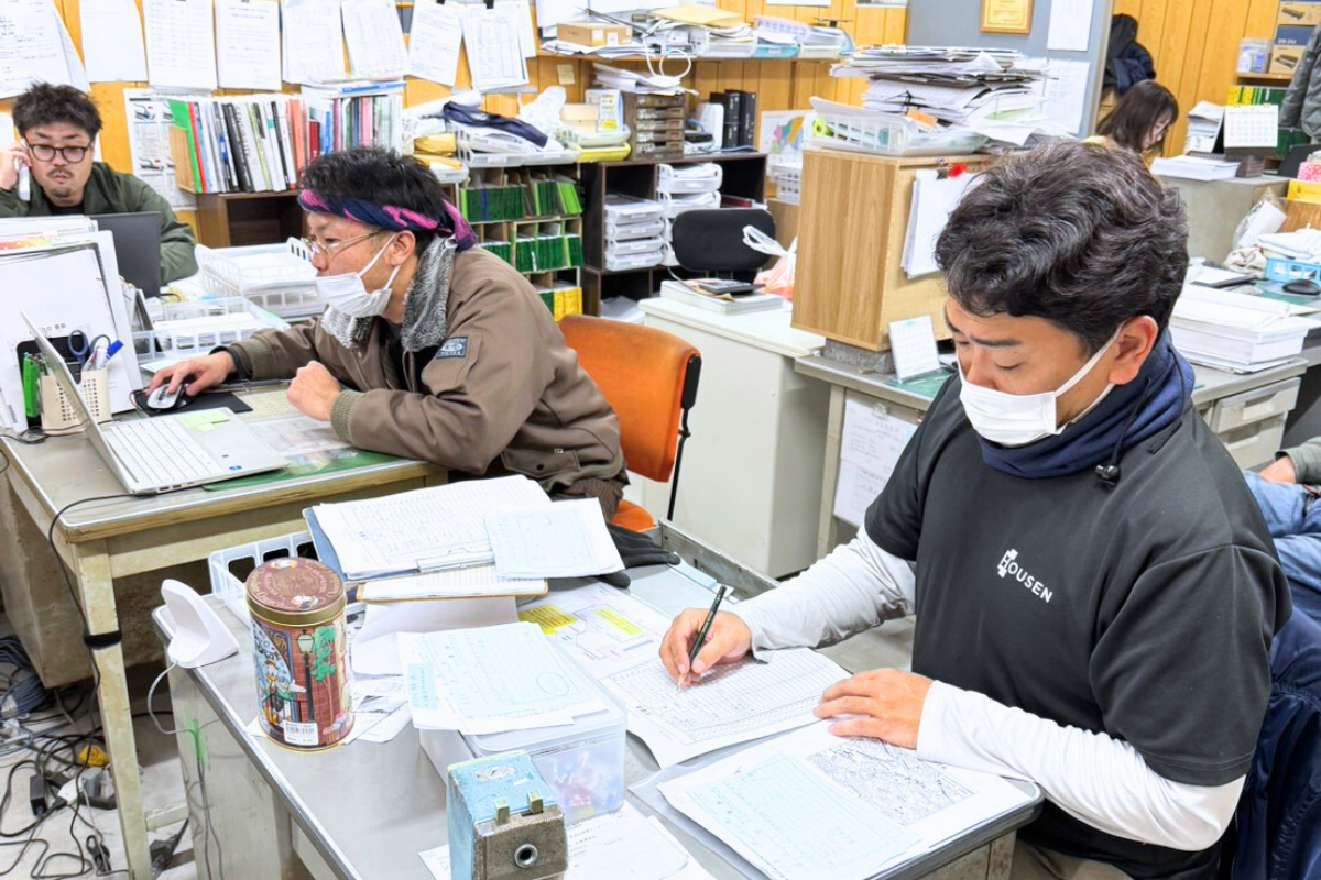 翌日の段取りを考えたり、タイルについての勉強をしたり、支店長や他メンバーと今日のトピックスについて共有したりしています。運転中は1人で黙々ですが、メンバーとのコミュニケーションも活発な会社です。